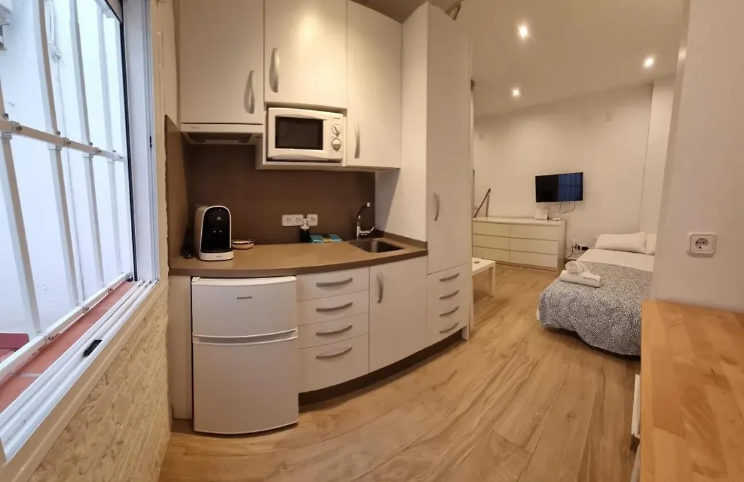 Parmi les équipements indépendants fournis, vous trouverez une kitchenette avec un micro-ondes, une cafétière/une théière électrique et un réfrigérateur. Les installations indépendantes comprennent également une cafetière/théière. Los Coloniales et El Traga sont à 200 mètres. La station de métro Puerta de Jerez est à 15 minutes à pied.